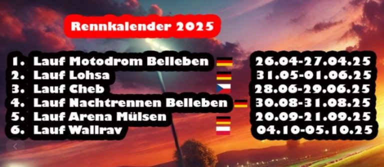 Hier auf meiner Website halte ich dich über meine Rennen, Erfolge und anstehende Meisterschaften auf dem Laufenden. Du bekommst exklusive Einblicke in meine Karriere, spannende Rennberichte und alle wichtigen Termine.